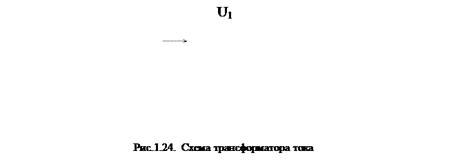 Первичная обмотка трансформатора состоит из одного или нескольких витков относительно большого сечения и включается последовательно в цепь, ток которой измеряется (рис.1.24.). Вторичная обмотка состоит из большого числа витков сравнительно малого сечения и замыкается на приборы с малыми сопротивлениями - амперметры, токовые обмотки ваттметров, счетчики и т.д. Рабочий режим трансформатора тока практически представляет собой режим короткого замыкания.