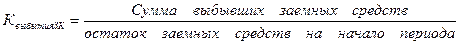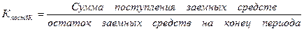 Коэффициент погашения заемных средств показывает, какова доля выплаченных заемных средств за отчётный период в общей их сумме на начало года. Он определяется делением суммы израсходованных (использованных) в отчётном году заемных средств на сумму остатка заемных средств на начало периода: