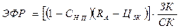 СНП - ставка налога на прибыль (в коэффициенте); RA – рентабельность активов, %; ЦЗК – цена заемного капитала (средняя расчетная ставка процента за кредит), %; ЗК – сумма заемного капитала; СК – сумма собственного капитала; (1 - Снп) – налоговый корректор; (RA – ЦЗК) – дифференциация финансового рычага.