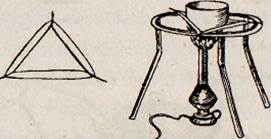 Рис. 6 Прокаливание осадка. После фильтрации и промывки на фильтре находится чистый осадок. Чтобы узнать его массу, в большинстве случаев фильтр сжигают, а осадок подсушивают и прокаливают. Прокаливание ведут в фарфоровых тиглях. Тигель предварительно прокаливают до постоянной массы в тех же условиях, в которых будет прокаливаться осадок. Фильтр с подсушенным осадком осторожно отделяют от воронки, стеклянным шпателем осторожно загибают края фильтра, так чтобы осадок оказался внутри фильтра, и переносят в тигель. Тигель с осадком помещают в специальный фарфоровый треугольник, положенный на кольцо штатива, и газовой горелкой нагревают тигель таким образом, чтобы фильтр постепенно обуглился (рис.7).