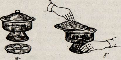 Рис. 9 Эксикатор (а) и правила его использования (б, в)