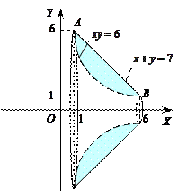 Рис. 2.4 Решение. Для построения фигуры, образующей тело вращения, найдем точки пересечения гиперболы и прямой. Для того решим систему уравнений: