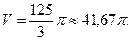 Объем «воронки» равен разности объемов двух конусов – прямолинейного конуса и криволинейного. Пределы интегрирования: