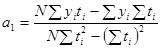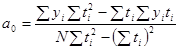 Формулы (2.2) и (2.3) получены на основе метода наименьших квадратов. Входящие в формулы значения сумм рассчитаны в табл.2.2. Подставляя их значения, находим