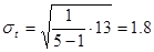 Для оценки границ интервального прогноза необходимо рассчитать среднее квадратичное отклонение: