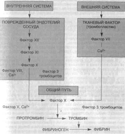 Схема 11. Внешняя и внутренняя системы свертывания крови