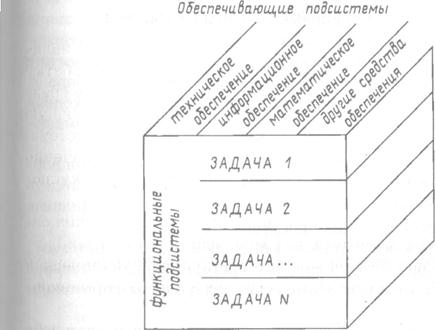 Значимым элементом любой логистической системы является подсистема, обеспечивающая прохождение и обработку информации, которая при ближайшем рассмотрении сама разворачивается в сложную информационную систему, состоящую из различных подсистем. Так же, как и любая другая система, информационная система должна состоять из упорядочении взаимосвязанных элементов и обладать некоторой совокупностью интегративных качеств. Составными частями информационных логистических систем являются различные виды обеспечения: • техническое обеспечение, т. е. совокупность технических средств, обеспечивающих обработку и передачу информационных потоков; • информационное обеспечение, которое включает в себе различные справочники, классификаторы, кодификаторы, средства формализованного описания данных; • математическое обеспечение, т. е. совокупность методом решения функциональных задач. Логистические информационные системы, как правило, представляют собой автоматизированные системы управления логистическими процессами. Поэтому математическое обеспечение в логистических информационных системах — это комплекс программ и совокупность средств программирования, обеспечивающих решение задач управления материальными потоками, обработку текстов, получение справочных данных и функционирование технических средств. Совокупность решаемых информационной системой задач, сгруппированных по признаку общности цели, образует так намываемую функциональную подсистему этой системы. Таким образом, в информационной системе можно выделить две подсистемы: функциональную и обеспечивающую (рис. 43).