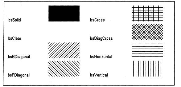 Об'єкти класу TBrush (пензля) служать для заповнення внутрішнього простору замкнутих фігур.