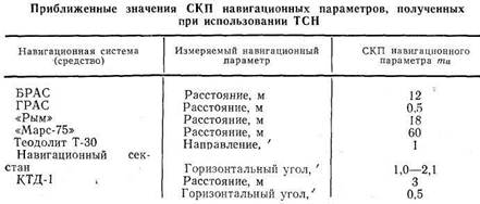 Определение места с использованием высокоточных радиотехнических средств применяется преимущественно в плохую видимость на больших удалениях от берега и обеспечивает высокую точность координирования траления. Средние квадратические погрешности основных навигационных параметров приведены в табл.1.