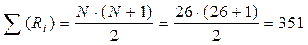 Данный метод основан на подсчете рангов. Запомните правила ранжирования. Их три: 1. Меньшему значению начисляется меньший ранг. 2. В случае, если несколько значений равны, им начисляется ранг, представляющий собой среднее значение из тех рангов, которые они получили бы, если бы не были равны. 3. Общая сумма рангов должна совпадать с расчетной, которая определяется по формуле