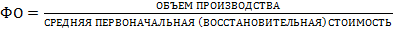 При расчете показателя учитываются собственные и арендованные ОС, не учитываются ОС, находящиеся на консервации и сданные в аренду. Показатель фондоотдачи анализируют в динамике за ряд лет, поэтому объем продукции корректируют на изменение цен и структурных сдвигов, а стоимость ОС - на коэффициент переоценки. Повышение фондоотдачи ведет к снижению суммы амортизационных отчислений, приходящихся на один рубль готовой продукции или амортизационной емкости. Рост фондоотдачи является одним из факторов интенсивного роста объема выпуска продукции (ВП). Эту зависимость описывает факторная модель: