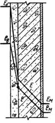 По своему физическому смыслу сопротивление паропроницанию слоя ограждения - это разность упругостей водяного пара, которую нужно создать на поверхностях слоя, чтобы через 1 м2 его площади диффундировал поток пара, равный 1 мг/ч. Общее сопротивление паропроницанию ограждающей конструкции (при диффузии пара) складывается из сопротивлений паропроницанию всех его слоев и сопротивлений влагообмену на его поверхностях, как это следует из выражения (2.43). Коэффициент влагоотдачи, как правило, в инженерных расчетах общего сопротивления паропроницанию не применяется, в расчетах используют непосредственно сопротивления влагоотдаче на поверхностях, принимая их значения равными Rп. в= 0,0267 м2. ч. Па/мг, Rп. н,= 0,0052 м2. ч. Па/мг [4]. Упругость водяного пара, диффундирующего через ограждение, по мере прохождения через его толщу будет изменяться между значениями ев и ен. Для нахождения парциального давления водяного пара ех в любом сечении ограждения (рис.9) пользуются формулой, аналогичной формуле (2.30) для определения распределения температуры по сечению ограждения: