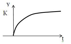Рис. 17 Передаточная функцияапериодического (инерционного) звена Большинство тепловых объектов являются апериодическими звеньями. Например, при подаче на вход электрической печи напряжения ее температура будет изменяться по аналогичному закону (рис. 17). 5) Запаздывающее Если при подаче на вход объекта некоторого сигнала он реагирует на этот сигнал не моментально, а спустя некоторое время, то говорят, что объект обладает запаздыванием. Запаздывание – это интервал времени от момента изменения входного сигнала до начала изменения выходного. Запаздывающее звено – это звено, у которого выходная величина у в точности повторяет входную величину х с некоторым запаздыванием t: y(t) = x(t - t). Передаточная функция звена: W(s) = e-ts. Примеры запаздываний: движение жидкости по трубопроводу (сколько жидкости было закачано в начале трубопровода, столько ее выйдет в конце, но через некоторое время, пока жидкость движется по трубе), движение груза по конвейеру (запаздывание определяется длиной конвейера и скоростью движения ленты) и т.д.