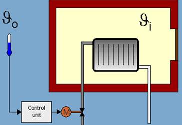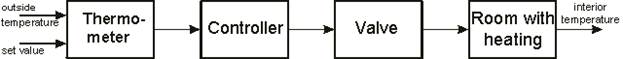 Способ действия без обратной связи приблизительно можно описать следующим образом. Непосредственно комната и нагреватели, которыми она оборудована, являются частью процесса управляющего воздействия, и составляют, так называемую незамкнутую регулируемую систему.