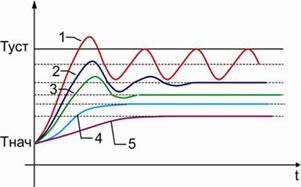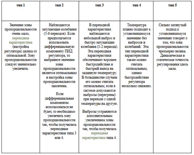 Рис. 9 Варианты переходных характеристик после настройки зоны пропорциональности