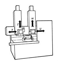 Рис.2.3 Координатные системы на станках с ЧПУ фрезерно-расточного типа: а – с горизонтальным расположением шпинделя; б – с вертикальным расположением шпинделя. Рис.2.4 Применение вторичных осей на токарно-карусельном станке с ЧПУ.