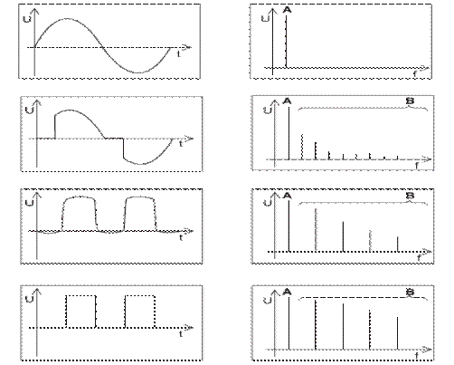 Широкополосные помехи: условия, описанные для узкополосных помех, не выполняются. – последовательность прямоугольных импульсов, – одиночные апериодические импульсы, – одиночные колебательные затухающие импульсы и т.п. Источники широкополосных помех удары молнии, разряды статического электричества, коммутация индуктивной нагрузки, газоразрядные лампы и т.п.