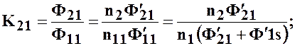 Коэффициент передачи K21 равняется: