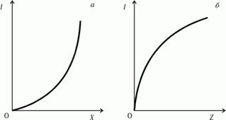Hа основании линии «доход - потребление» можно построить кривую Энгеля, напрямую выражающую зависимость между денежным доходом потребителя и количеством приобретаемого товара. Для супериорных товаров кривая Энгеля имеет положительный наклон, но здесь возможны два варианта: 1) с увеличением дохода возрастает угол наклона кривой, что свидетельствует о сокращении дополнительных приобретений товара (Рис.8.а). Такой характер кривой типичен для продуктов питания; 2) с увеличением дохода уменьшается угол наклона кривой, так как возрастают дополнительные приобретения товара (Рис.8.б). В качестве такого товара могут выступать предметы роскоши, медицинские услуги, образование, отдых, туризм.