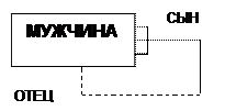 На следующем примере (рис. 9.3) изображена рекурсивная связь, связывающая сущность МУЖЧИНА с ней же самой. Конец связи с именем “сын” определяет тот факт, что несколько людей могут сыновьями одного отца. Конец связи с именем “отец” означает, что не у каждого мужчины должны быть сыновья.