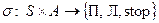 Каждая ячейка ленты может находиться в одном из конечного множества состояний. Эти состояния будем обозначать символами: б) Внутренняя память машины - это устройство, которое в каждый рассматриваемый момент находится в некотором состоянии. Число возможных состояний внутренней памяти конечно и для каждой машины фиксированное. Состояние внутренней памяти мы будем обозначать символами в) Управляющая головка. Это устройство, которое может, перемещаться вдоль ленты так, что в каждый рассматриваемый момент времени оно находится в определённой ячейке ленты. Иногда, наоборот считают управляющую головку неподвижной, а движущейся частью считают ленту. Тогда считают, что в управляющую головку вводится то одна, то другая ячейка ленты. Если какая-нибудь ячейка находится в управляющей головке, то говорят, что машина в данный момент обозревает эту ячейку. г) Механическое устройство. Предполагается, что машина снабжена особым механизмом, который в зависимости от состояния воспринимаемой ячейки и состояния внутренней памяти может изменить состояние внутренней памяти и одновременно либо изменить состояние воспринимаемой ячейки, либо сдвинуть управляющую головку в соседнюю справа ячейку. Если управляющая головка находится в самой правой ячейке и по ходу работы машина должна сдвинуть управляющую головку в соседнюю справа отсутствующую ячейку, то предполагается, что, сдвигая головку, машина одновременно пристраивает недостающую ячейку в пустом состоянии. Аналогично работает машина и в случае, когда головка воспринимает самую левую ячейку и по ходу дела машине надо сдвинуть головку ещё левее. Наконец, если в какой-то момент времени внутренняя память машины приходит в заключительное состояние По определению, состоянием машины Тьюринга или её конфигурацией называется совокупность, образованная последовательностью Все эти данные можно записать одним словом С помощью такого «виртуального» устройства можно решать различные алгоритмические задачи. Машина Тьюринга – это пример того, что даже очень сложные алгоритмы могут быть реализованы на очень простых устройствах. Таким образом, машина Тьюринга - это множество, состоящее из пяти объектов ( 1) 2) 3) Все эти функции зависят от того, в каком внутреннем состоянии в данный момент находится машина, и от считываемого с ленты символа. Машина работает дискретно, по тактам. Управляющая головка обозревает ячейку ленты, в которой записан символ Таким образом, программа работы машины состоит из тактов, каждый такт можно записать в виде: