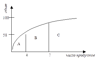 Рис.3. Процесс контроля Цель контроля - установление соответствия запланированных показателей фактическим объемам полученных доходов от реализации товаров и услуг. Объекты контроля - объем продаж, размеры прибыли и затрат, целевые аудитории, соответствие запланированных результатов полученным и др. Направления анализа по п. 1: а) анализ сбыта. Ведется на основе принципа Паретто (80 / 20) и на основе сообщений об отклонениях о ходе реализации. Согласно принципу Паретто значительная часть общего объема сбыта приходится на небольшую часть потребителей, товаров или территорий. Принцип Паретто реализуется с помощью А, В, С анализа.