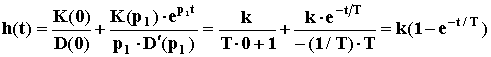 где p1 = - 1/T - корень уравнения D(p) = Tp + 1 = 0; D’(p1) = T.