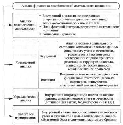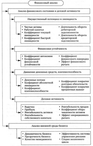 Рис.6. Блок-схема финансового анализа В свою очередь, АФО может проводиться как комплексно, так и по отдельным направлениям, определенным на этапе постановки цели и задач.