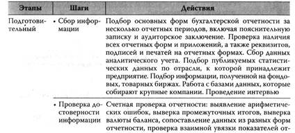 Выделяют несколько этапов исследования: подготовительный этап, предварительный анализ, детализированный анализ, заключительный этап (табл. 1).