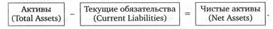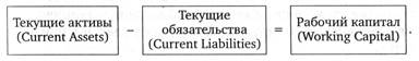 В этом случае чистые активы складываются из собственного капитала (СК) и долгосрочных обязательств (ДО). Такой показатель еще называют вложенным (используемым) капиталом (имеет и другие способы расчета). По сути, чем выше доля вложенного капитала в валюте баланса, т.е. чем больше у компании долгосрочных источников финансирования бизнеса, тем выше ее финансовая устойчивость. • Рабочий капитал (Working Capital) (синоним: чистый оборотный капитал) — характеризует наличие (отсутствие) у компании резерва текущих (оборотных) активов на покрытие текущих (краткосрочных) обязательств. Первый способ расчета: