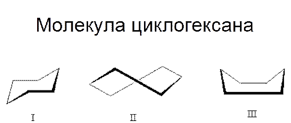 Наиболее устойчивой пространственной формой является кресло, фактически это транс- форма 1 и 4 атомов углерода относительно 2,3, 5, 6 атомов, которые лежат в одной плоскости. Конформация твист является промежуточной между двумя остальными.