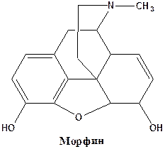 Эти два алкалоида целесообразно рассмотреть вместе, т.к. они близки по строению и изучались исторически одновременно. Морфин выделен из опия Сертюрнером в 1806 г, кодеин Робике в 1832 г. Опий- сгущенный сок семенных коробочек различных видов мака. Содержит более десятка родственных алкалоидов. Морфин С17 Н19 N O3 получают из опия – сгущенного млечного сока, вытекающего из надрезов на недозрелых головках снотворного мака. Кодеин С18 Н21 N O3 получают из высохшего на воздухе млечного сока несозревших плодов снотворного мака. Морфин имеет 2 разные ОН группы – фенольную и спиртовую, растворим в щелочах. Кодеин - монометиловый эфир морфина, метилирована фенольная ОН группа, поэтому он не растворим в щелочах.