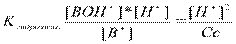 8. Равновесие в водных растворах сильных и слабых кислот и оснований. Расчет рН. 1.Когда слабые кислоты диссоциируют в незначительной степени, то в растворе наступает равновесие: НА↔Н++А- Оно описывается константой диссоциации. Значение констант диссоциации содержатся в справочниках. 2. Сильные кислоты в водных растворах диссоциируют практически нацело НА→Н++А- концентрация ионов водорода совпадает с общей концентрацией кислоты в растворе, а рН=[H+]=Cк, рН=-lg[H+]=-lgCk 3. Сильные основания (щелочи) диссоциируют нацело ВОН→В++ОН- 4. Слабые основания - диссоциируют в незначительной степени и этот процесс описывается соответствующей константой, которая называется константой диссоциации слабого основания: ВОН↔В++ОН-