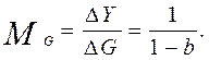 Мультипликатор госрасходов МG показывает, на сколько рублей увеличивается объем национального производства под воздействием одного дополнительного рубля госзакупок правительства.