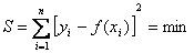 Рис.10.2. Иллюстрация реализации метода наименьших квадратов На данном рисунке y 1, y 2, …, y n – экспериментальные значения, f (x 1), f (x 2), …, f (x n) – расчетные значения аппроксимирующей функции. Аналогичные значения, но только в логарифмическом измерении, приведены на правой части рисунка. В основе метода наименьших квадратов лежит следующее положение: наилучшее приближение аппроксимирующей функции y = f (x) к экспериментальным данным будет в том случае, когда сумма квадратов отклонений расчетных значений f (x 1), f (x 2), …, f (x n) от экспериментальных данных y 1, y 2 … y n, является минимальной, т.е.