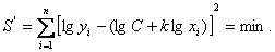 Задача состоит в том, чтобы определить неизвестные коэффициенты C и k. Для упрощения вычислений эту степенную зависимость логарифмируют: