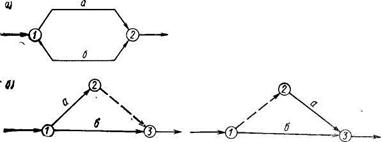 Рисунок 6.3 - Построение параллельно выполняемых работ: а — неправильно; б — правильно