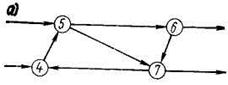 Рисунок 6.5 - Примеры недопустимых замкнутых контуров: а — замкнутые контуры 4-5-6-7-4; 4-5-7-4; б — замкнутый контур 5-6-7-5.