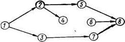 5) в сетевом графике нельзя допускать «тупиков» т. е. событий, кроме завершающего, из которых не выходит ни одной работы, например событие 4 (рисунок 6.6). Наличие «тупиков» показывает, что не выявлены полностью взаимосвязи или в графике показаны излишние работы, которые фактически не влияют на достижение конечной цели;