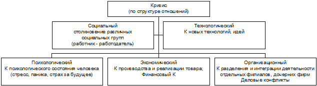 Практика показывает, что кризисы неодинаковы не только по своим причинам и последствиям, но и по самой своей сути. Понимание сути и типологии кризиса дает возможность понизить остроту кризиса, уменьшить время его протекания, сделать его последствия менее болезненными.