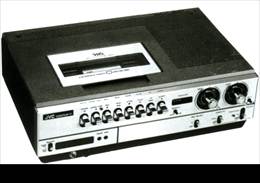 Рис. 16. Один из первых серийных видеомагнитофонов формата VHS Каждый из союзников VHS старался внести свой технический вклад в совершенствование видеомагнитофонов этого формата. Так, в 1982 г. Akai представила систему экранных меню и дистанционного программирования таймера. В том же году появились компактные кассеты VHS-Compact (VHS-C) и адаптер для них в виде полноразмерной кассеты VHS, a Sharp выпустил для них первую портативную деку с питанием от аккумуляторов. Она предназначалась для работы с видеокамерами, и ее размеры были чуть больше книги. В 1984 г. компания JVC выпустила первый камкордер GR-C1 формата VHS-C, а год спустя Matsushita выпустила камкордер Panasonic NV-M1, работающий на стандартной кассете VHS. В результате отставание пришлось ликвидировать компании Sony, которая сосредоточилась на создании видеотехники камерных форматов 8 мм (Video-8, Hi-8 и MiniDV). По нескольким параметрам видеомагнитофоны конкурирующих форматов не нашедших широкого применения не уступали, а по качеству изображения превосходили VHS. Оценивая сегодня причины, по которым победил формат VHS, следует признать, что качество изображения само по себе не являлось фактором, определяющим массовый спрос на видеотехнику. Более важным является ее цена и доступность видеозаписей. В 1987 г. в Японии появляется стандарт Super VHS и первые камкордеры этого формата. К концу 80-х годов образовался некий паритет камкордерной техники JVC, Matsushita и Sony, который с переменным успехом этих фирм сохраняется и в настоящее время. Интенсивная работа компании Philips в области лазеров привела к появлению в 1972 г. оптического видеодиска, который, вопреки ожиданиям, не получил широкого распространения. Вслед за ним появился диск большей емкости Selectavision, разработанный компанией RCA (США), но и данный формат не нашел широкого распространения. Цифровые технологии обработки информации привели к появлению новых цифровых форматов видеозаписи, основанных на универсальности цифровой платформы новых оптических носителей CD и DVD, (Video CD, Super Video CD, Video DVD и т.д.).