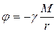 где γ — размерная постоянная, необходимая для того, чтобы величина F имела размерность силы. В случае наличия тел сложной формы, когда их нельзя рассматривать как материальные точки, формула (1.39) видоизменяется, но основной характер взаимодействия сохраняется. Постоянная в уравнении (1.39) была впервые определена в 1798г. английским физиком Кавендишем в поразительном по точности опыте. Ее численное значение очень мало γ = 6.6·lO-11н·м2/кг2 — это значит, что с силой столь малой величины притягиваются друг к другу две массы в 1кг каждая на расстоянии в 1м. Огромное значение, которое имеют силы гравитации в природе, обусловлено с одной стороны, большими массами небесных тел, а с другой — отсутствием сил иного происхождения. Соотношение (1.39) носит название закона всемирного тяготения. Оно хорошо описывает движение тяготеющих масс. С физической точки зрения соотношение (1.39) описывает взаимодействие массы m с полем тяготения, или, как принято говорить, с гравитационным полем, создаваемым в пространстве массой M. Хотя способ передачи гравитационного взаимодействия нам неизвестен, опыт показывает, что с каждой массой в пространстве связано гравитационное поле. Гравитационное поле, создаваемое в пространстве массой M, будем характеризовать потенциалом