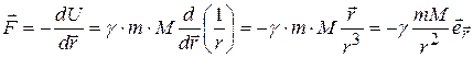 т. е. потенциальная энергия поля в гравитационном поле равна потенциалу поля в точке нахождения тела, умноженному на массу тела. Сила притяжения (1.39) может быть найдена по формуле (1.35):