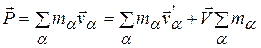 Импульс замкнутой механической системы имеет различные значения по отношению к различным инерциальным системам отсчета. Если система отсчета K' движется относительно системы K со скоростью V, то скорости частиц v'α и vα в этих системах связаны соотношением vα = v'α + V. Поэтому связь между значениями P и P' импульса в этих системах дается формулой: