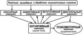Рис.. Взаимоотношения компонентов боли. Объяснения в тексте