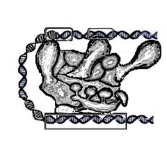 Рис.73. Петля ДНК. Белки-регуляторы, осаждённые на энхансере и сайленсере взаимодействуют с факторами инициации промотора.