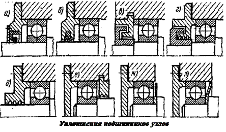 Это специальные детали, выполненные из мягких упругих материалов (мягкие металлы, резина, пластмасса, войлок и т.п.), которые предотвращают вытекание смазки из подшипниковых узлов и попадание в них загрязнения.