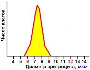 Распределение эритроцитов по диаметру называется кривой Прайс-Джонса.