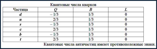 Согласно современным представлениям адроны – составные частицы. У адронов обнаруживается внутренняя структура. Из опытов по рассеянию электронов на нуклонах протоны и нейтроны имеют радиус ~0,8 . 10-15 м. Электрические заряда распределены в них плавно, спадая от центра к периферии. Считается, что все адроны состоят из кварков – дробно заряженных фундаментальных частиц. Предполагается, что их имеется шесть сортов или «ароматов»: u, d, c, s, t, b.