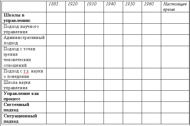 Комментарии к рисунку: 1. Процессный подход рассматривает управление как непрерывную серию взаимосвязанных управленческих функций. 2. Системный подход рассматривает организацию как совокупность взаимосвязанных элементов (люди, организации, технологии, задачи), которые ориентированы на достижение целей в условиях меняющейся среды. 3. Ситуационный подход концентрируется на том, что пригодность и эффективность различных методов управления определяется ситуацией. В первой половине 20-го века развитие менеджмента рассматривалось с точки зрения указанных 5-ти школ. Многие теоретические и практические достижения менеджмента в рамках указанных школ используются в современном менеджменте.